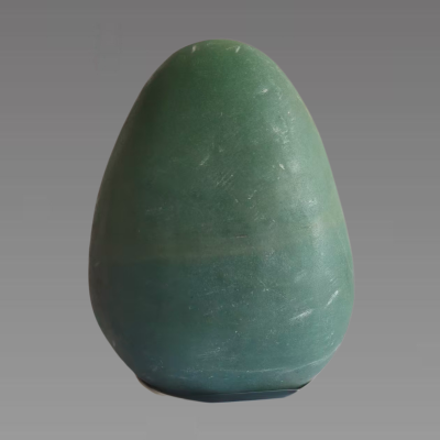 这是一件以新疆东陵玉为材质雕琢而成的卵形摆件,整体呈饱满的蛋形轮廓,线条流畅圆润,兼具天然玉石的质感与人工雕琢的规整之美。其色泽以沉稳的绿色为主,色调层次自然过渡,部分区域因矿物成分分布差异呈现出微妙的深浅变化,既保留了玉石原生的质朴气息,又凸显出温润雅致的视觉效果。表面可见细微的天然纹理与打磨痕迹,在光线下隐约透出柔和的光泽,隐约可见砂金效应的质感,体现出新疆东陵玉特有的矿物结构特征。作为兼具观赏性与工艺性的玉石制品,它既承载了新疆地域特色矿产的天然禀赋,也融入了传统玉雕对线条与形态的审美追求,是展现东陵玉材质之美与工艺价值的典型载体。。具有较高的收藏价值和文化艺术欣赏价值!