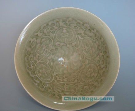 宋以后的产品,满布器面的图案减少,只在碗,盘内的周壁,出现圆圈形的莲花,菊花,鱼鸭,水波纹等简单图案。