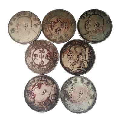 这组钱币集合涵盖了清代至民国时期的核心机制银圆品类,包含光绪元宝、大清银币、民国三年袁大头(含甘肃版、甘肃签字版等特殊版式) 等主流制式,整体均采用晚清至民国标准机器冲压工艺铸造,材质为银质,币面分别呈现清代龙纹银元的帝王年号、蟠龙纹饰与民国袁像银币的袁世凯侧面肖像、纪年、纪地文字,版式丰富、品类齐全,既有清代末年银元改制、中央统一铸币的代表性器物大清银币,也有地方铸行的光绪元宝,更有民国时期流通最广、版式细分繁多的袁大头系列,其中甘肃版等地方版别还体现了民国时期中央与地方铸币的工艺、文字、形制差异,钱币表面留存着自然的流通磨损、包浆与氧化色迹,完整展现了清末民初货币制度转型、银圆从清代官铸到民国通用流通的历史脉络,同时反映出不同时期、不同铸币机构的工艺特征、文字书法与形制规范,是近代中国机制银圆发展与流通历史的直观实物集合。