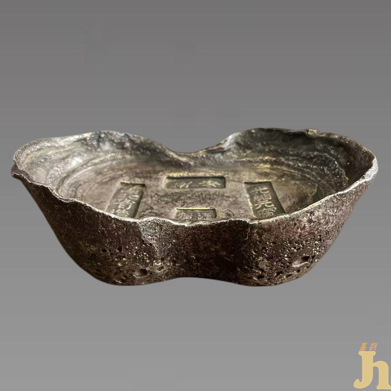 银锭,这种承载着悠久货币文化和历史的古代钱币,虽然已经退出了商业舞台,但它现在的价值却是不容忽视的。银锭是经由银匠之手铸成,因此每一件银锭都是独一无二的艺术品,现今存世的古代银锭,非常稀少,而铭文锭更是不多见。如今,古代银锭作为一种珍贵的收藏品,被各路专家学者及收藏者们争相看好。