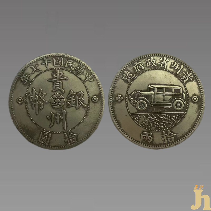 “贵州轿车银币”俗称“轿车银币”、“轿车银元”,简称“车板”,国外称AUTO DOLLAR。该银币以轿车为图画,这在中国钱币史绝无仅有。在中国已知发行的近千种老银币中,“轿车银币”因图画特别,锻造量少,流转面窄,存世稀疏等,早已是币中珍品。