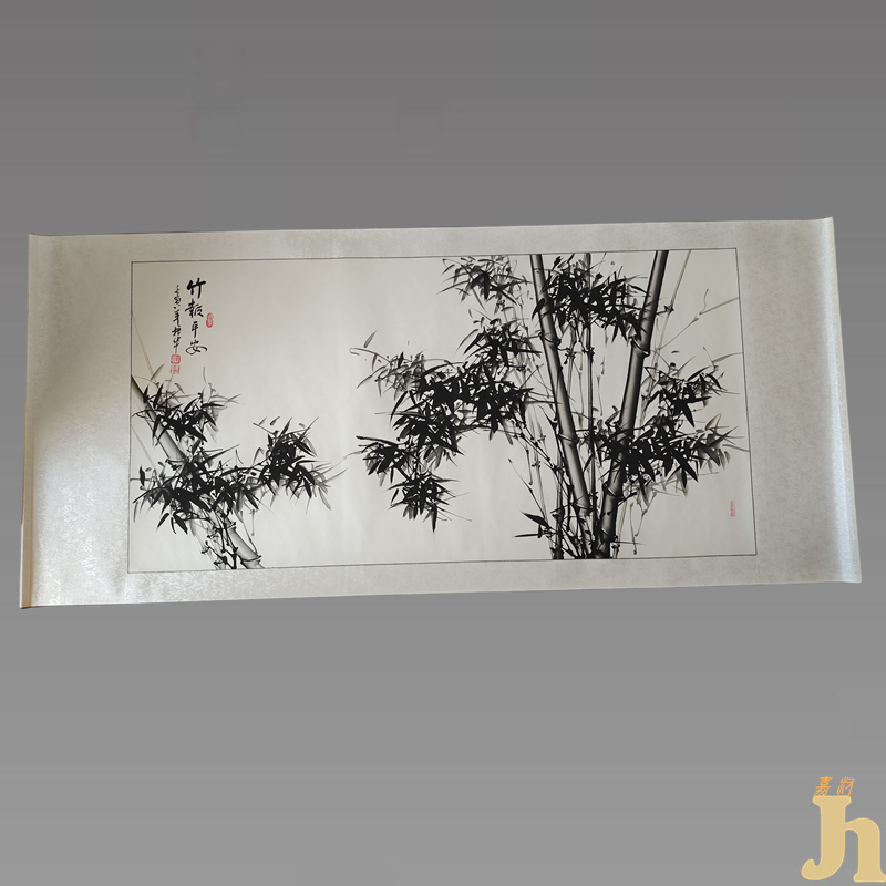 此幅作品,竹叶微微下垂,仿佛为清晨的透明色的露水压弯了叶腰,更显嫩绿欲滴。虽主体描绘的是竹的中间部分,但中端分支刻画的非常细腻,其线条和竹叶皆轻而不浮,密而不乱,看似自由随意,实则顿挫全在其中。整幅画浑然天成,似乎把文人艺术的蕴籍,文雅,平淡,宁静,文质彬彬展现的淋漓尽致,令人叹为观止。画中竹子枝干挺秀,穿插得势,淡墨点缀,远近分明,赋色分别,神态自若,不仅表现了竹的天然神态,也寄寓五福临门,福星高照的主观意兴。细观竹形,上顶画布,下扎土壤,更是一派顶天立地的慷慨豪情。自古文人多爱竹,爱它的柔美纤细,也爱它不畏艰难凛然耸立的高尚品格,“独坐幽篁里,弹琴复长啸。”篁幽篁,独竹似非诗人所言之“篁”,竹象征君子之道,与梅、松被称为“岁寒三友”。“外直中通襟怀若谷”常被用来形容竹子。竹的同名歌曲《竹》。清代郑燮《竹石》“咬定青山不放松,立根原在破岩中。千磨万击还坚劲,任尔东西南北风。” 宋代苏东坡《竹》“宁可食无肉,不可居无竹。无肉令人瘦,无竹令人俗。 人瘦尚可肥,士俗不可医。”具有很高的收藏价值和文化艺术欣赏价值!