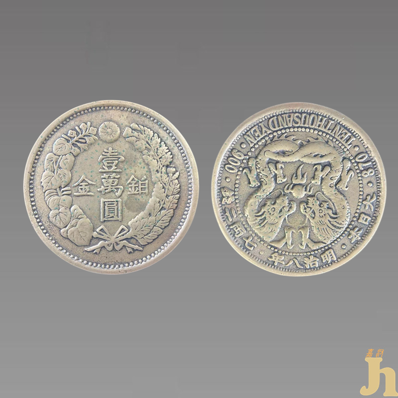 明治维新期间,日本一切社会制度皆模仿西方国家。这是一个貌似我们古时夜郎国一样的国家,当时在国家上处处碰壁,明治三年从英国殖民地香港购的二手制作本货币机器一台,当年即生产少量壹元银币。明治八年(1876年)日本壹万圆铂金币,无论是造型或设计都是世界一流的,日本贸易币现存世量极少。