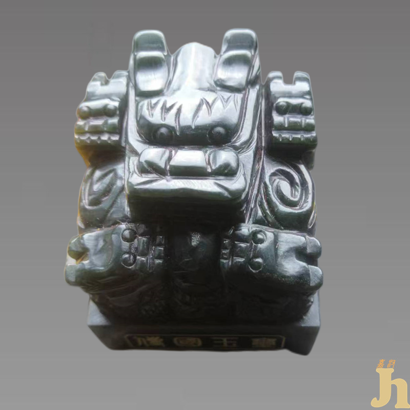 传国玉玺雕刻要经过复杂的工艺过程,拣选上乘的玉料之后还要经过刻、碾、琢、磨、钻、等多道工序,成器之后还要在上面琢刻纹饰,图案雕刻极其困难。《传国玉玺》在中国玉雕大师仵海洲的精雕细琢下,每一方玉玺纹饰雕刻,线条均匀大方、劲挻平直,玺基上方的五条螭龙,昂首挻胸,神态威严;发须飘逸,活灵活现。彰显仵海洲大师高超的玉雕技艺。“玉玺鼻祖,万玺之王”《传国玉玺》采用古代皇室宫廷技艺——“外溜金”“内填珐琅彩”工艺,制作极其复杂,制作工艺程序极其烦琐,要经过十几道的工艺流程,才能制作完工,成品率极低。《传国玉玺》两侧面镶嵌的铜胎溜金珐琅彩光彩夺目,章显出此宝玺正宗的皇室血统,尊贵不凡。具有很高的收藏价值和文化艺术欣赏价值!