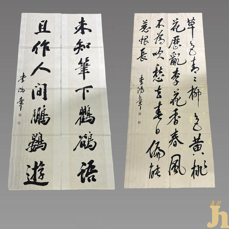 这幅行楷七言联,显得结构上更加严谨规范、端庄简洁,笔力上呈现出更加苍劲雄健、沉稳浑厚,字里行间饱含着一种书法艺术上的丰厚底蕴,标示出书法家是一位精妙的大手笔!另外一幅作品布局有序,字字和谐于一体,美若一粒粒生动活泼的珍珠在跳跃,行行有度,疏而不乱。览之让人心旷神怡,赏心悦目,不失为一篇书法高品佳作,显示出李鸿章的书法造诣之深。具有很高的收藏价值和文化艺术欣赏价值!