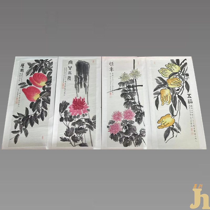 齐白石款“五福双寿图”四条屏