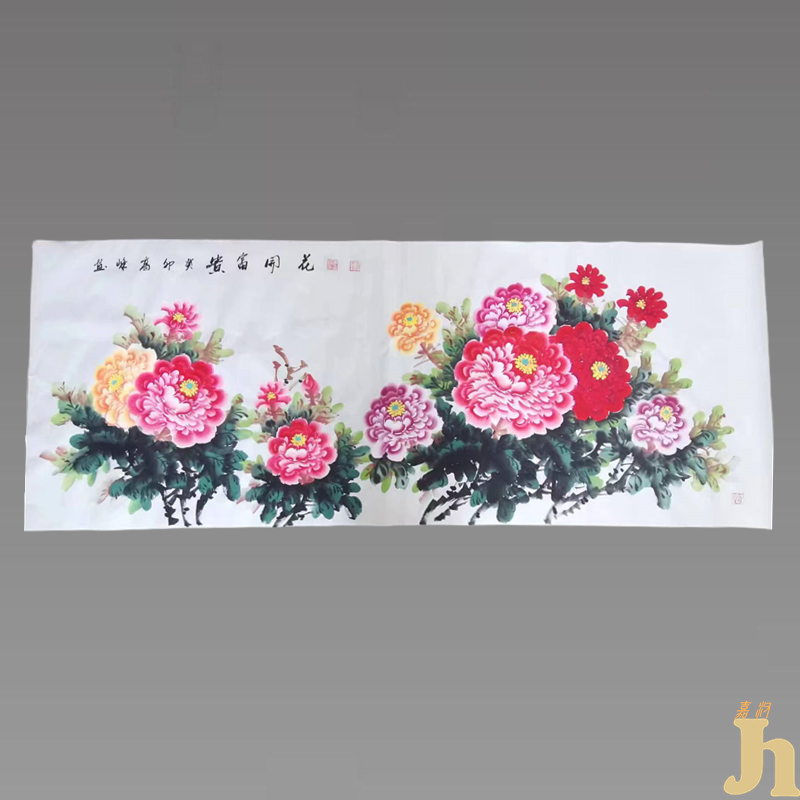 此幅画中牡丹成簇热情绽放,姹紫嫣红,墨韵淋漓,赋彩鲜明。牡丹素有“花中之王”的美誉,有圆满、浓情、富贵、雍容闲雅之意。整幅画非常写实,花朵辅以深浅绿叶,以浓墨勾筋,线条圆润饱满,疏密有致,极具富贵之气,寓意十分吉祥。在中国传统意识中,牡丹还被视为繁荣昌盛、花开富贵,幸福和平的象征,此画寓意美好,欣赏度高,很多人乐于收藏,极具艺术魅力。具有很高的收藏价值和文化艺术欣赏价值!