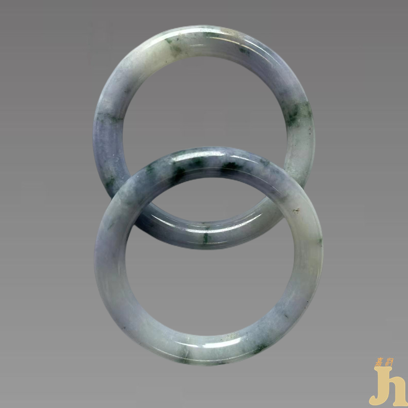 清宫紫罗兰飘绿翡翠手镯一对