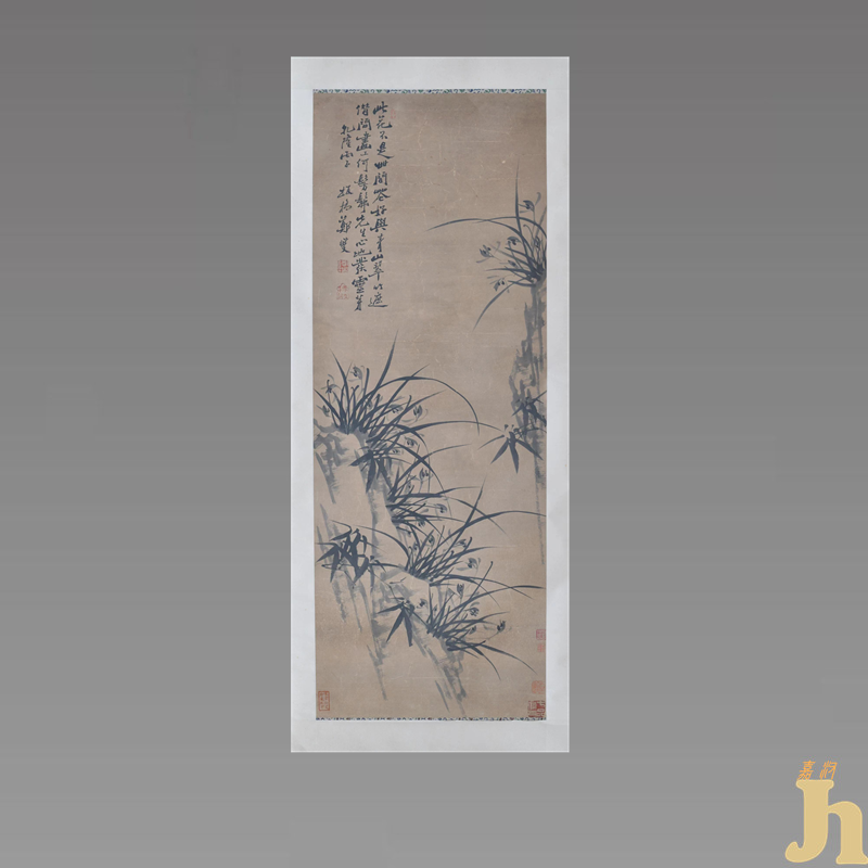 郑板桥的《兰花图》兰花几丛,有叶有根,用墨浓淡兼之,纵逸多姿,浓墨画兰叶,浓淡墨点花心,淡墨画兰根,透露出兰叶、兰花、兰根的幽香和无限生机。构图上表现两丛兰花错落有致,兰叶、兰花、兰根相互呼应,增强画幅的整体感。这幅作品淡墨勾出兰花,清雅可人,般配着左上角的题词,兰花的芳心,就在这一刻散发出幽香。具有很高的收藏价值和文化艺术欣赏价值!