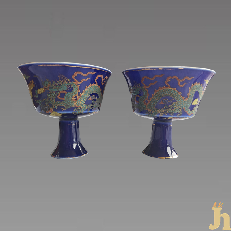 大明成化年制款“蓝釉描金云龙纹高足杯”