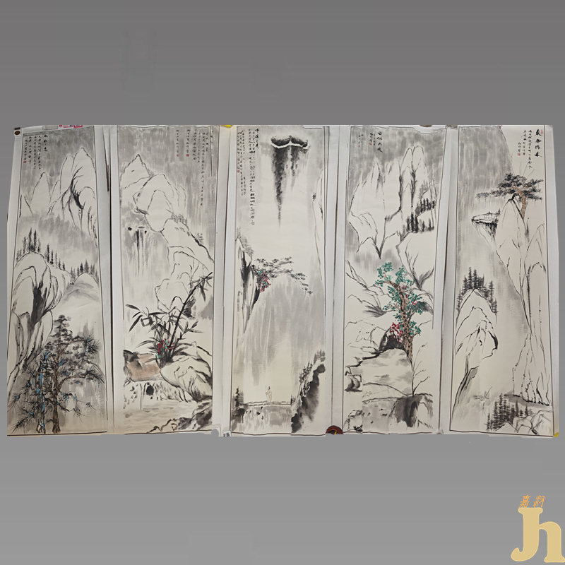 沈松款“五条屏山水画”