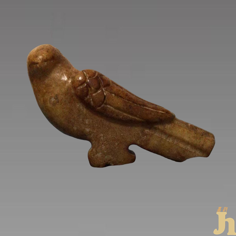 这件高古玉鸽材质温润纯美,雕刻工艺精湛,线条流畅,纹样优美,工艺水平很高。造型为抽象化的鸽子,左右对称雕刻,整器生动隽永,而又富有灵韵,玉鸽的羽毛,被概括成十条弯曲的纹理,分别雕刻在对称的双翼上,显得古朴而高雅。鸽子造型为中国传统的文化符号,是万灵情感的使者,也是信义的象征。鸽子象征和平,已成地球人共识。每逢重大的庆典活动,总少不了鸽子的身影,人们通过放飞鸽子,以表达喜悦的心情和对和平的期盼。鸽子不仅象征和平,还是爱情的使者,被世人称为“爱情鸟”。此外,鸽子还是平等的象征,象征人与自然的和谐、人与人之间的平等。当今各大城市,饲养广场鸽已成时尚。形象优美、性情温顺的鸽子,越来越受到人们的喜爱和欢迎。 具有很高的收藏价值和文化艺术欣赏价值!
