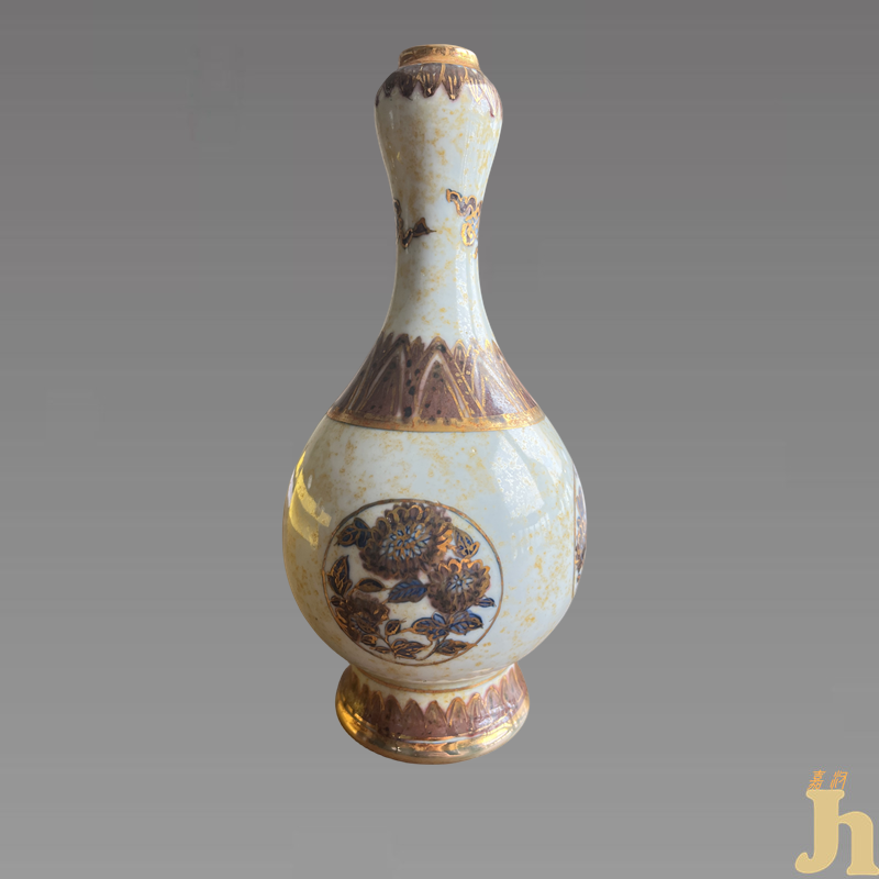明清时期景德镇窑常见的一种瓶式样,瓶口似蒜头而得名。瓷制蒜头瓶始烧于宋代,流行于明清,以景德镇窑制品为多见,品种有青花、五彩、洒蓝描金等。