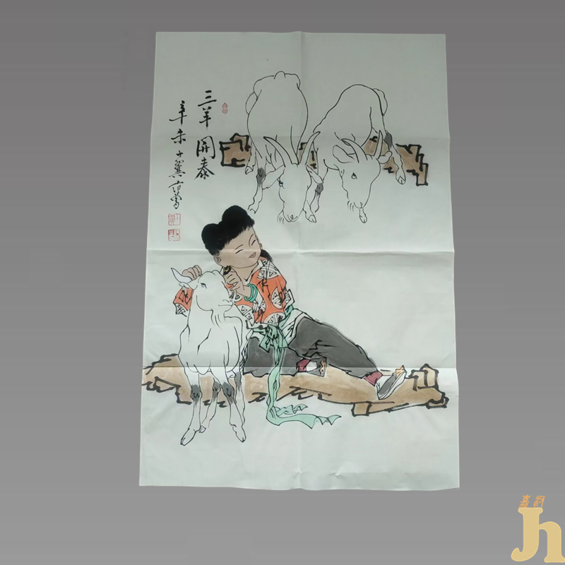 三只羊刻画细腻、栩栩如生,惟妙惟肖,憨态可掬。作品构图饱满、疏密得当、掩映有致、线条流畅灵动,恰到好处地勾划出了物体的轮廓。呈现出了一派和谐、温馨、雅致、静谧的意境。《三羊开泰》是我们最常见的传统祝福吉祥图之一,《易经》以正月为泰卦,三阳生于下。冬去春至,阴消阳长,有吉祥之象。故以“三阳开泰”或“三阳交暴”为岁首吉祥之语。而“羊”在古代与“阳”通用。因此也作“三羊开泰”。羊在我国的传统文化中属于吉祥的象征,祥和.儒雅温和.温柔多情在民俗中多被称作吉羊,自古便与中国先民朝夕相处之伙伴,深受人们喜爱。古代中国甲骨文中“美”字,即呈头顶大角之羊形,是美好的象征。三阳开泰,汉族传统吉祥语和吉祥图案。《周易》称爻连的为阳卦,断的为阴爻,正月为泰卦,三阳生于夏;冬去春来,阴消阳长,有吉祥之象。常用称颂岁首或寓意吉祥。具有较高的收藏价值和文化艺术欣赏价值!