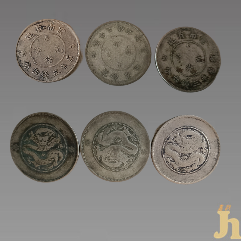 此组云南省造光绪元宝库平三钱六分钱币,正面以珠圈为界,可分为内外两个部分,钱币珠圈内铸“光绪元宝”四字,上环“云南省造”四字,下环“库平三钱六分”,左右两端饰有星花,字体端庄清秀,笔画圆润饱满;钱币背面是蟠龙图,蟠龙为长须龙,纹路如刀刻所成,龙身纹路精美,该藏品虽历经岁月的磨痕,但字体、纹路依然清晰可见,工艺精湛,纹饰优美,具有较高的收藏价值和文化艺术欣赏价值!
