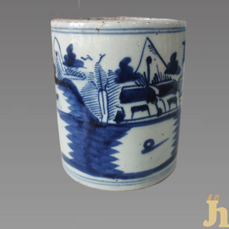 青花山水笔筒