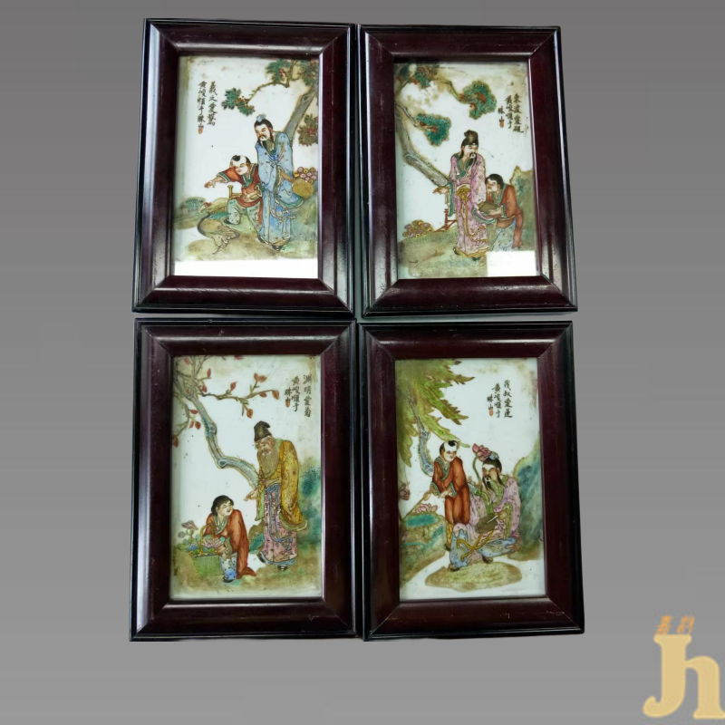黄峻顺款“粉彩(四爱)瓷板画”