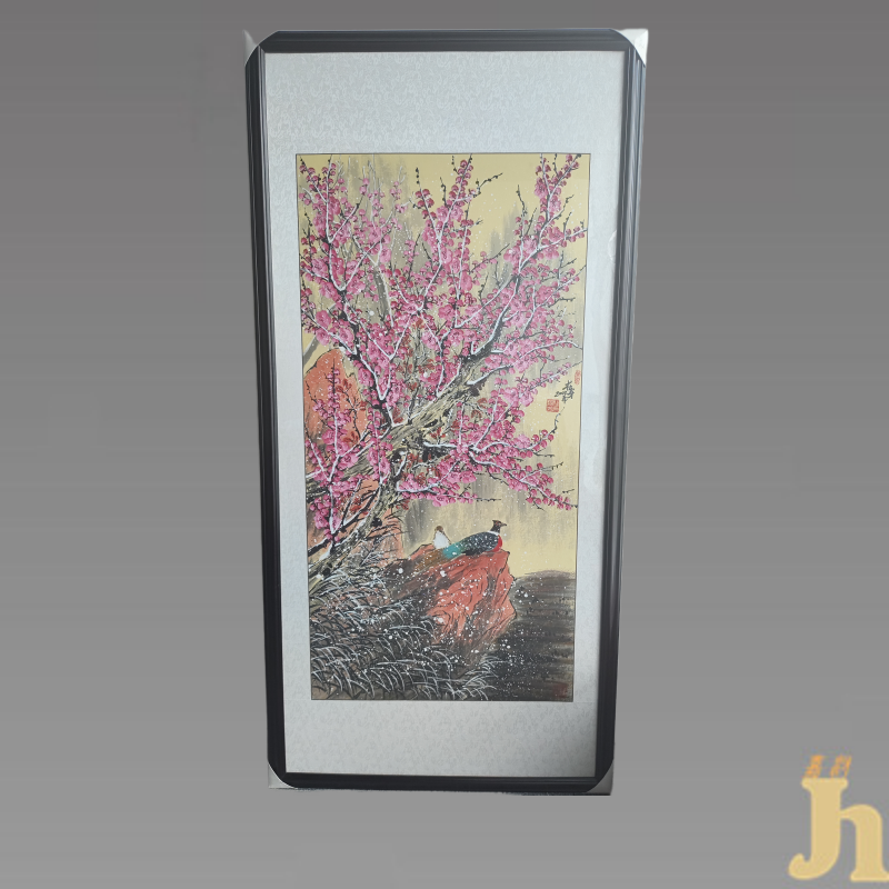 杜宝才笔下的梅花格调十分高雅,线条强劲有力,用墨的浓淡有致,画面极富层次感。独特画技充分表现出梅花的高洁淡雅,其技艺之高超,能够从梅花的每一处细节中看出。每当观赏杜宝才的梅花精品时,总是会有一种正在捧读一本好书,或是在欣赏一句绝美的诗句的感觉,那种感觉如同畅饮佳酿,如同遇见了世外高人一般,如沐清风。杜宝才的梅花宛如一位静美的佳人,没有世俗的尘嚣,只有原野的清新,在梅园的一角悄然绽放,这种静态美并没有僵硬之气,反而活力无限,充满生机。画面中两只鸟儿平静的望着前方,好似与周遭的美景融合在一起了。梅花在冬春季节开,和兰花、竹子、菊花一起称为“四君子”,也与松树、竹子一起被称为“岁寒三友”。自古就有一个说法:“春兰,夏荷,秋菊,冬梅”,梅花凭着耐寒的特性,成为代表冬季的花。梅花是中华民族与中国的精神象征,象征坚韧不拔,不屈不挠,奋勇当先,自强不息的精神品质。具有较高的收藏价值和文化艺术欣赏价值!
