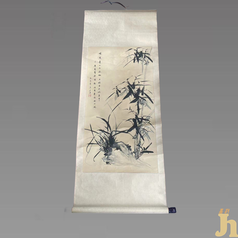 兰花是中国十大名花之一,首先是它有宜人的香气。这种兰香如“幽灵”般,时有时无,时隐时现,时浓时淡,时远时近,给人们清新和愉快的感受。竹因四季常青、岁寒不凋而闻名,人们以此喻为君子之节,表现了坚贞不渝的品德。图中之兰竹上下错落,穿插适度,虽神态不一,但风致翩翩,顾盼有情,表现了清气宜人的品德。此图描绘了在清风中摇曳的劲竹与兰花相伴而生的画面。构图简洁,笔法健挺洒脱,于写意之中见写实功底,将竹之高洁素雅、坚韧不屈的物性尽现笔底。弥漫於字里行间的真气、真意、真趣,将作者的思想和人品表现得淋漓尽致。文以达心,画以适意,令人有见其画如见其人之感。艺术欣赏的妙蒂就在於调动人的联想,由此及彼,感悟事理。在用笔上,此图之兰竹以没骨法写之,穿插互应,疏花劲叶,格外醒目。兰则以重墨写叶,叶叶飞舞,生动有姿。花则以淡墨写之,中锋勾染,少了几分娟秀妩媚,却多了一种桀骜不驯的气势,豪迈纵宕,畅快淋漓。而竹则墨色深沉,淋漓尽致。用笔沉着劲利,墨色秀润含蓄,老辣苍劲,一气呵成。此图虽只写幽兰一丛,嫩竹一束,但气局开张,内涵丰富,构成纵横错落、飘洒有致的笔墨旋律。具有较高的收藏价值和文化艺术欣赏价值!