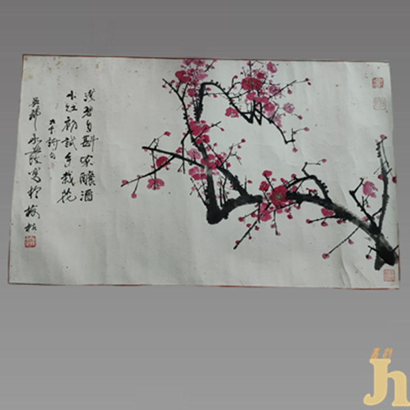 陈水发画梅,花蕊逼真,用墨、用水、用色调和,参差变化,大有讲究。他的梅花虬枝盘曲,立体感强,参差交错的枝干浓淡变化有序,给人一种自然、富有生气的力度感。盛开和含苞的梅花成片结簇,或伸展或低垂,似有暗香来。具有较高的收藏价值和文化艺术欣赏价值!