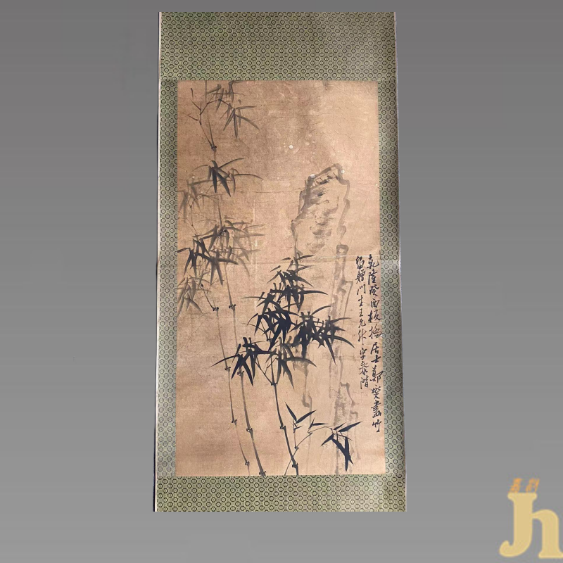 此图为庭院中的竹石,瘦石壁立,以笔意为主,长折带皴勾出坚硬挺削的石质,褶裥处略施以小斧劈皴。石前新篁三枝,劲拔挺秀,以“冗繁削尽留清瘦”的简洁风格写成。画面简约明快,竹清石秀。郑板桥的竹风韵超然,首先得之于喜竹爱竹。他认为竹子坚强:不管风吹雨打还是严寒烈日,都是身板挺直,青青郁郁;竹子“虚心”:不论山野巨竹还是房前青枝,都是空心如一,从不妄自尊大;竹子有“节”:经得起磨难不“变节”。竹子的风格与郑板桥的脾性契合,物我交融。具有较高的收藏价值和文化艺术欣赏价值!