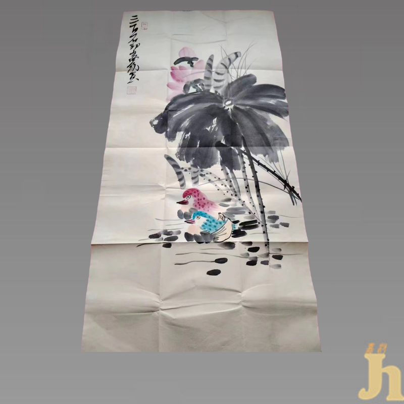 此幅作品堪称齐派“红花墨叶”的经典佳构,雄健浑厚,笔墨酣漓,意趣盎然。荷花以没骨法为之,并蒂荷花,或开或合,色调馥郁沉厚,寓意美好;荷叶墨气淋漓,大如华盖的田田荷叶与新生的嫩叶卷舒开合,荷梗顺势而起,用笔苍遒老辣;荷荫下水波粼粼,成双的鸳鸯悠然地凫游于荷叶之下,令人顿生“只羡鸳鸯不羡仙”的憧景。具有较高的收藏价值和文化艺术欣赏价值!