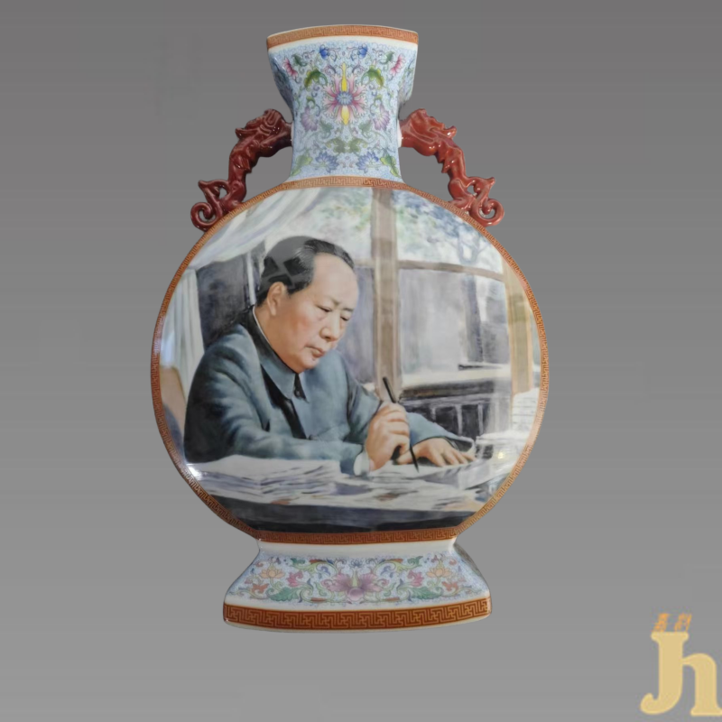 百岁瓷王王锡良携子王采共同创作东方红《开国领袖》江山尊,它以乾隆时期最经典的双龙抱月尊为原型,一面以毛泽东在庐山为主图,一面以毛泽东在中南海批阅卷宗为主图,侧面珐琅彩吉祥八宝为修饰图。浑然一体,自然天成,这是王锡良将伟大领袖毛主席一生最具代表性的两幅画像重新创作在抱月瓶之上,史上第一次,弥足珍贵。具有较高的收藏价值和文化艺术欣赏价值!