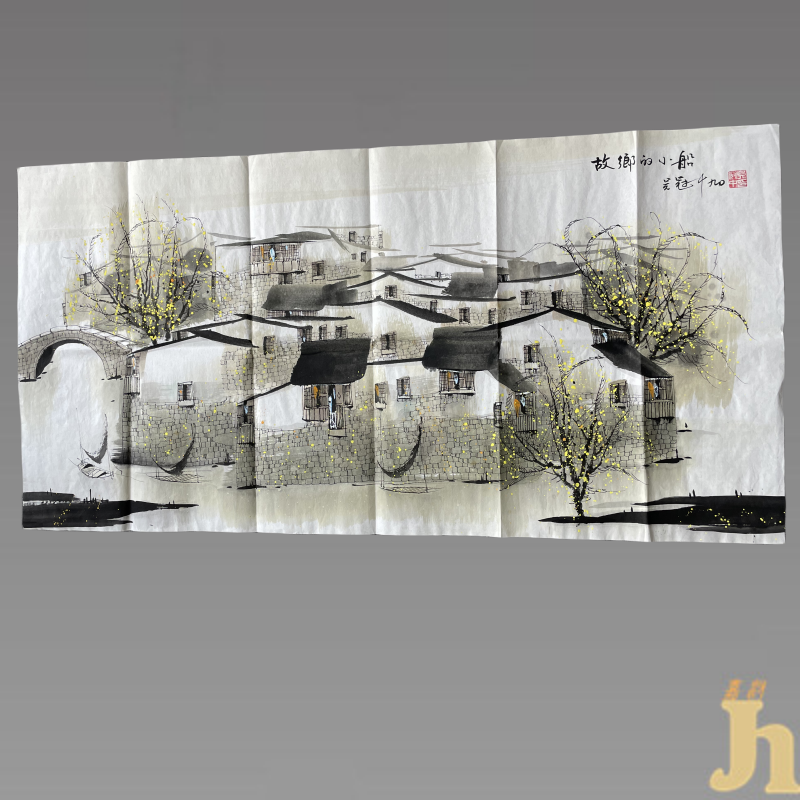 水上那飘浮的船体被荡漾的水波摇晃着,形象瞬息多变,兼备具象与抽象之美感。乌篷船,听雨眠,一蓑烟雨枕江南。对于一些人来说,江南是一幅淡淡的水墨画,用一支毛笔,蘸一点墨,就能画出心中的江南梦。水巷乌篷,一摇一曳,穿过小桥,路过人家,摇摆着属于江南的故事。读吴冠中的画,打动我们的是灵动于画面里的情愫。情之传递是艺术的本质,一个情字了得。具有较高的收藏价值和文化艺术欣赏价值!
