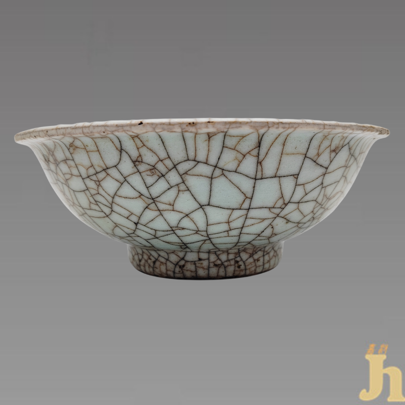 哥釉器,亦名碎釉瓷,始于宋代,是宋代五大名窑之一,但宋代哥釉传世极少。哥釉瓷有一个重要的特征是釉面开片,这是瓷器釉面的一种自然开裂现象。明代时期,景德镇成功烧制哥釉器。从永宣至成化,哥釉瓷已经达到了尽善尽美的程度,尤以成化仿哥釉瓷瓶、斗笠碗、炉等为主流,釉层莹润,光泽内敛,也成功烧出了金钩铁线。