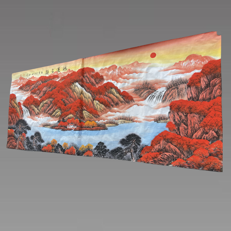 朱仲秋先生用犀利的笔法和清雅通透的染色技法,让作品厚重中显轻盈、大气中透雅致。中国自古以来红色都象征着高贵和吉利,而鸿运当头山水画更是人们喜闻乐见的装饰风水山水画,无论是装饰在家中,还是装饰在办公室都非常适宜,除了本身视觉上的美好享受外,更具有不俗的风水内涵。
