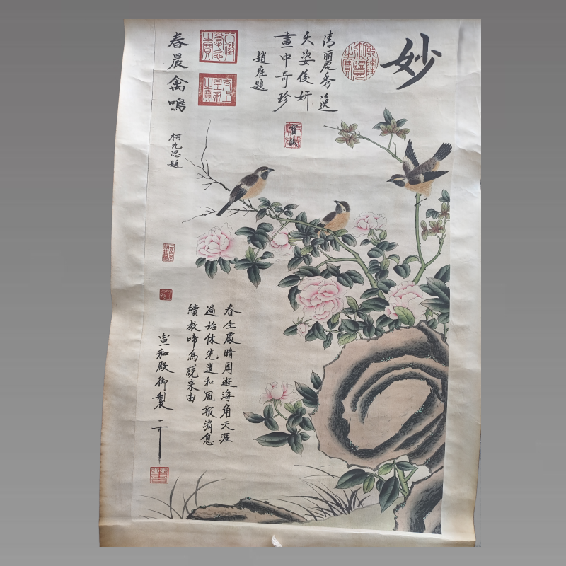 赵佶是一个“不爱江山爱丹青”的皇帝,也是古代少有的艺术天才与全才,被后世评为“宋徽宗诸事皆能,独不能为君耳”!其用笔朴质简逸,对景写生,无论禽鸟、花草均形神兼备。图中鸟之羽毛,用淡墨轻擦出形,又以较浓墨覆染,再以浓墨点染重点的头尾、羽梢等部位,层叠描绘,反映鸟羽松软的质感、丰富的厚度以及斑斓的色彩。枝叶的画法也是类似。画法与史籍记载完全一致。具有较高的收藏价值和文化艺术欣赏价值!