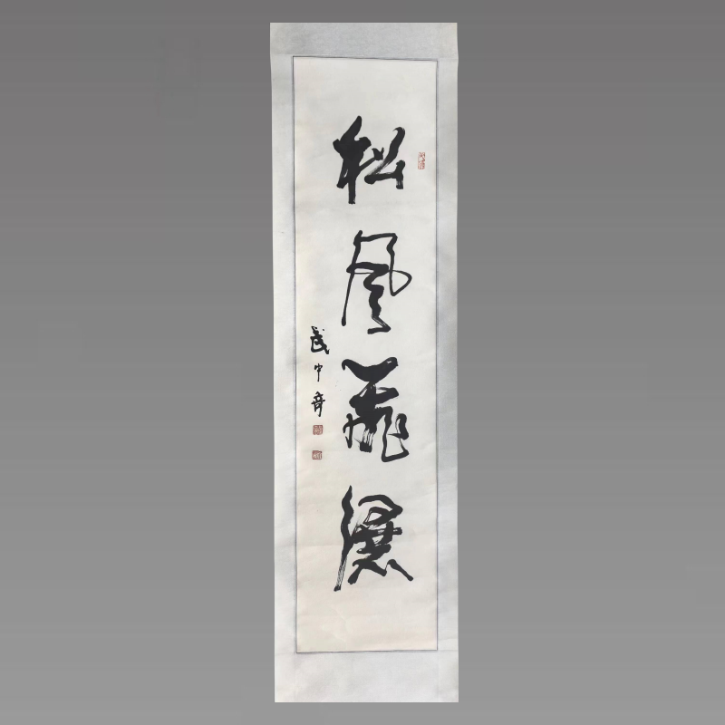 武中奇老师的作品,无论字形多大,都能举重若轻,随心所适。走笔沉稳自然,体式庄重英挺,谁知所用的“笔”,竟是他亲手用六把芦苇扫帚改制而成的!其书法峻宕雄伟、刚健质朴、紧中见放,草书则动静相依、错落有致、抑抑应节、气势开豁。他的书法艺术的特色和风格,实质是其投身革命近五十年来胸怀坦荡、视野开阔、坚毅不拔、高风亮节的内在精神力量在形态上的具体反映,它闪耀着社会主义时代的精神,是我国书法界的骄傲。具有较高的收藏价值和文化艺术欣赏价值!