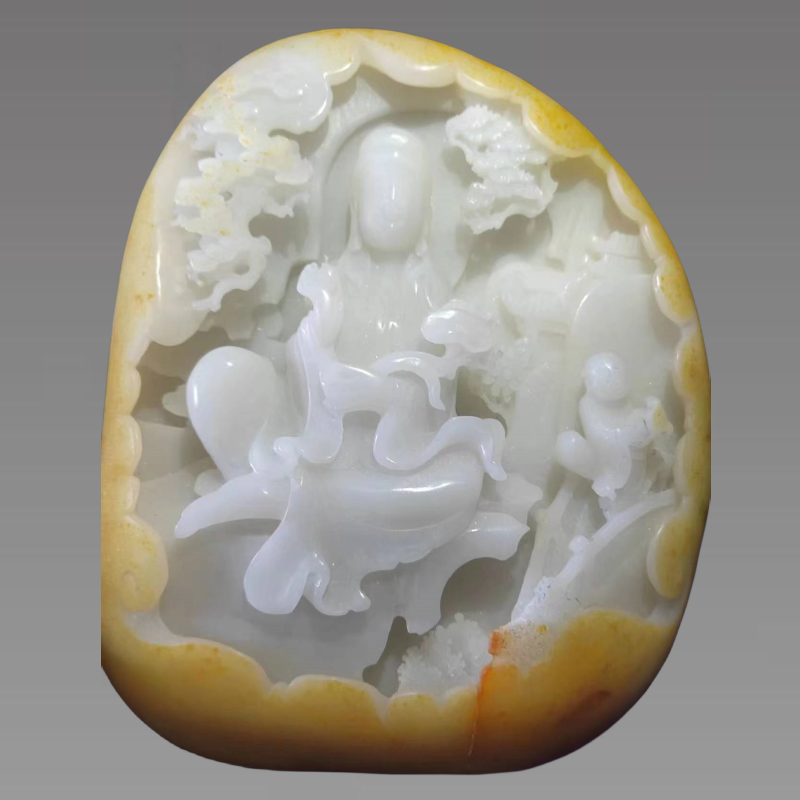修慧不修福,不是大智慧,修福不修慧,不是真慈悲。菩萨慈眉善目,面目的整体庄严肃穆中自然地流露出俯瞰苍生的善意,微含笑意又冷峻节制,手拿玉如意,寓意普度众生,侧面俏色巧雕,象征百福俱来,雕工精到佩戴把玩此玉,祈愿福德和智能达到至善的境地。具有较高的收藏价值和文化艺术欣赏价值!