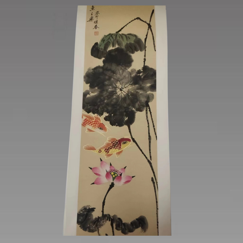 鱼在中国传统文化中是一种美好吉祥的意象,被视为悠然自在、精神自由的象征。在绘画方面,鱼类题材很早就已经流行,并且不同时期的画家都热衷于描绘鱼的形象。张继春画的鱼既有传统笔墨之神,又不失写实之形。他画的锦鲤,用笔重压轻抬,墨色淡雅,动态轻盈。具有较高的收藏价值和文化艺术欣赏价值!