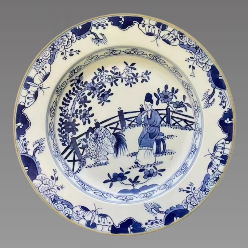 此器内底蝶恋花纹饰,青花发色清新淡雅,纤细的线条将蝴蝶刻画得栩栩如生,薄如蝉翼的翅膀几近透明,翩翩起舞的蝴蝶,清丽可人。蝴蝶绕着花丛翩翩飞舞,折枝花卉娇艳盛开,蝴蝶与花卉搭配完美。蝴蝶意为“福迭”,花卉意为“富贵”,体现了富贵纳福、吉祥幸福的美好寓意。具有较高的收藏价值和文化艺术欣赏价值!