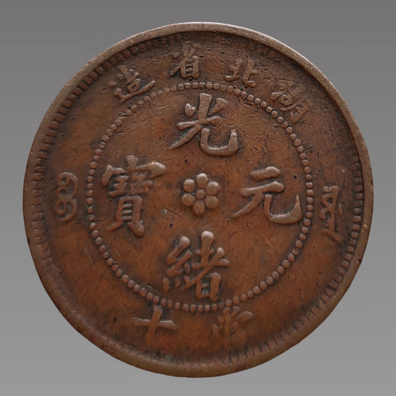 光绪元宝是清朝光绪年间(1887年发行)流通的货币之一,是由湖北两广总督张之洞率先引进英国铸币机器铸造的银元和铜元。光绪元宝共有十九个省局铸造,除中央户部,地方省所铸铜元,皆在其正面上缘镌写省名,是大清光绪年流通大面值货币之首,也是中国首批引进海外技术的印发流通货币。