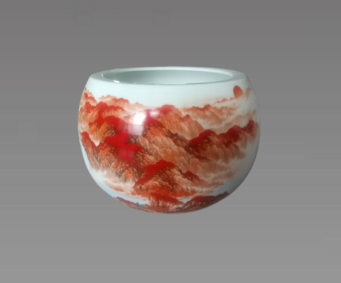 此藏品《鸿运当头》聚宝盆以 “鸿运”“松鹤延年” 为核心文化符号,既延续了中国传统祥瑞文化的精神内核,又以当代陶瓷语言重构了山水、瑞兽的意象表达;作为景德镇陶瓷文创代表作之一,它既是实用的生活器物,也是中式家居美学的文化载体。聚宝盆器型取 “天圆地方” 之韵,整体呈饱满的球形敞口,口径宽绰便于使用,弧壁线条流畅舒展,既符合传统 “聚气纳福” 的器型寓意,又适配现代家居的陈列需求。具有较高的收藏价值和文化艺术欣赏价值!
