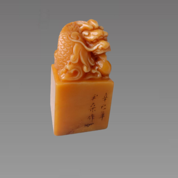 早在一千多年前,我国已有人开始采集田黄石,到了明清两代田黄更是盛名于世。许多达官显贵,文人雅士竞相刻意收集田黄石。相传清初时期皇帝祭祀天地,神案上都少不了一方上品田黄石。田黄材质温润凝腻,在软质雕刻石中居第一品。明、清各朝均被作为贡品献入皇宫,被雕刻成御用玺印及艺术摆件,故田黄石又被尊为“石中之王”、“石帝”,故其身价无与伦比。从田黄石的属性看,凡经雕镌的艺术品,都可以当作文物看待,因为它不能复制,属于没有再生性的艺术品。