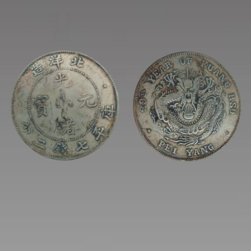 此钱币正面为光绪元宝,珠圈外上为“北洋造”字,下为“库平七钱二分”,左右为满文,背面中心为满清蟠龙图。它不仅是晚清为抵制外国银币泛滥、收回货币主权的重要举措,也是中国近代币制从传统银两制向现代银元制过渡的关键物证,它既代表了洋务运动后中国近代机器造币工业的发展水平,稳定了北洋地区金融秩序并成为跨区域贸易的重要支付手段,更承载着晚清政治、经济、外交的多重信息,是研究清末财政危机、币制改革与地方权力运作的重要实物资料。具有较高的收藏价值和文化艺术欣赏价值!