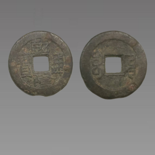 乾隆通宝是乾隆时期的流通货币,铸于清高宗乾隆年间(1736-1795年),连宝泉、宝源在内先后有22局开铸。乾隆通宝多用黄铜与青铜,也引进国外洋铜浇制法。该钱直径约2.2-2.5厘米,重约2.4-4.8克。钱面文字“乾隆通宝”以楷书书写,其字从上而下及右而左直读。背文沿雍正满文钱式,穿孔左边有“宝”字,穿孔右边铸有各局名。不同时期币种的形状与大小也有不同。在铸造工艺上,乾隆通宝以 “母钱翻砂法” 为核心:先雕制精细的 “雕母”(祖钱),再翻铸用于批量生产的 “母钱”,最终产出流通的 “子钱”,流程严谨且形制规范 —— 主流为 “天圆地方” 的小平钱,早期用黄铜铸 “黄钱”,后加锡改 “青钱” 防私销,新疆红钱则以高纯度红铜铸造成红润色泽,工艺细节既体现了清代铸币的标准化,也暗含实用与防伪的考量。