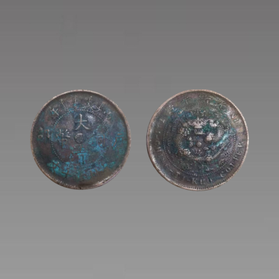 大清铜币作为清末统一币制后广泛流通的机制铜元,其文化艺术价值主要体现在三个方面。首先,它集中体现了晚清时期中西文化的交流与融合。币面既有传统的汉字、满文和象征皇权的蟠龙纹,又首次大规模引入英文标注和西方机器冲压工艺,使钱币在视觉语言上呈现出鲜明的时代过渡特征。其次,其文字与纹饰具有较高的审美价值。正面楷书端庄规整,满文布局严谨,体现了清代官方文书的规范与庄重;背面的蟠龙纹形态多样,线条细密流畅,既有传统龙纹的威严气势,又融入了近代写实雕刻的技法,展现出独特的艺术张力。最后,大清铜币承载着丰富的历史文化信息。它见证了清末币制改革、近代工业技术的引入以及社会制度的转型,是研究晚清经济结构、文化观念与国家形象的重要实物材料。整体而言,大清铜币不仅是一枚货币,更是近代中国文化变迁与艺术风格转型的缩影。