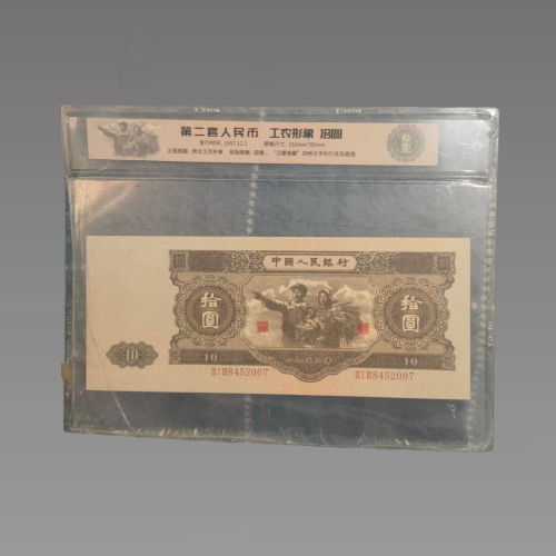 第二套人民币1953年版10元券,不仅是一张承担货币流通职能的纸币,更是一段特殊历史的缩影。它见证了新中国成立初期国民经济的恢复与发展,记录了中苏关系从合作到破裂的历史转折,承载着新中国人民对美好生活的向往与追求;其精湛的印制工艺彰显了当时的工业水准,独特的票面设计传递了鲜明的时代理念,稀缺的存世量则奠定了其“钞王”的地位。如今,它早已超越了货币本身的价值,成为人民币收藏领域的标杆品种,更是研究新中国金融史、印刷史与外交史的重要实物资料。具有较高的收藏价值和文化艺术欣赏价值!