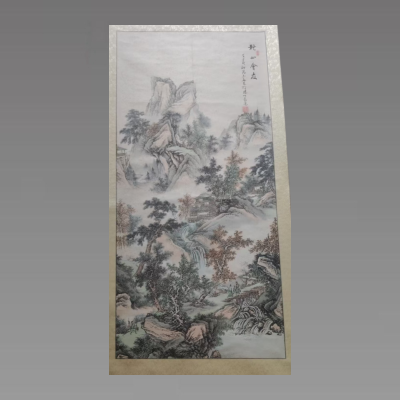 中国山水画,又称山水,是以山川自然景观为主要描写对象的中国画,形成于魏晋南北朝时期,隋唐时开始独立,五代、北宋时趋于成熟,成为中国画的重要画科。中国山水画较之西方风景画,早了1000年左右。中国山水画传统上按画法风格分为青绿山水、金碧山水、水墨山水、浅绛山水、小青绿山水、没骨山水等。山水画是中国的一个有特色的分支,从隋朝就开始出现山水画,山水画强调“平远”、“高远”、和“深远”,运用散点透视法。中国山水画是中国人情思中最为厚重的沉淀。游山玩水的大陆文化意识,以山为德、水为性的内在修为意识,咫尺天涯的视错觉意识,一直成为山水画演绎的中轴主线。从山水画中,我们可以集中体味中国画的意境、格调、气韵和色调。再没有那一个画科能像山水画那样给国人以更多的情感。若说与他人谈经辩道,山水画便是民族的底蕴、古典的底气。