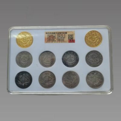 这套 “清代中央铸币金银币珍藏”,是晚清货币制度转型的重要实物缩影,由天津造币总厂所铸代表性金银币组成,完整呈现清末中央统一币制的历史脉络与工艺巅峰。套币共 10 枚,含 2 枚金质龙纹试铸币与 8 枚银质龙洋,金币为晚清推行金本位制的历史见证,以高浮雕蟠龙纹融合中西工艺,尽显皇权威严;银币涵盖造币总厂光绪元宝、宣统三年大清银币等核心品类,铭文雄浑、龙纹精湛,代表晚清机制币最高水准。它既是清末币制改革的实物载体,见证中国货币体系的近代化转型,也是清代工艺美术的集大成者,龙纹设计延续传统皇权象征、融合西方雕刻技法,每一枚都是微型艺术品,浓缩了晚清中央铸币的百年历史与艺术风华,是研究清代货币史、工艺美术史的重要实物参考。具有较高的收藏价值和文化艺术欣赏价值!