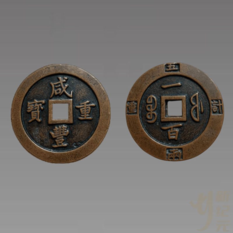 清咸丰年间(公元1850-1861年),通货膨胀严重,各钱局大肆铸钱。咸丰钱由重宝当十至当五十,及至元宝当百、当五百、当千。由于三宝文齐备,等值序列多,中央和地方铸局亦多,因而其咸丰钱的版式形制繁复,加之其距今时间仅一百五十余年,故其遗存总量也多。