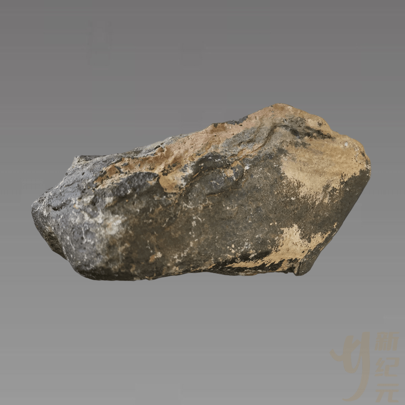 状如靴形,梭角圆润,气窗散布,触之坚硬,