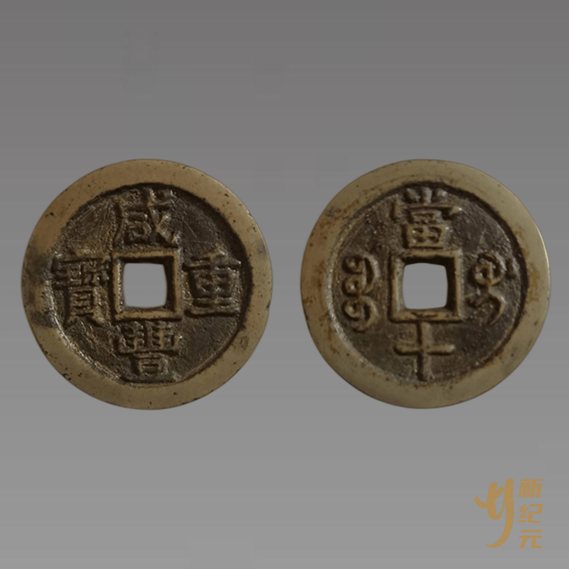“咸丰重宝”,由于铸造时间早,流通区域广,所以也是自古以来古泉爱好者最关心并致力于收藏和欣赏的计值钱币。在诸多咸丰大钱之中,应当推举咸丰重宝当十钱币为最。铸期最长、数量最大、版式最多、流通最广,无一不在咸丰大钱中占据首位。自咸丰三年起,宝泉、源、直、蓟、济、德、陕、巩、福、苏、浙、河、武、宝昌、云、川、桂、黔、(宝安)迪、伊、阿克苏、喀什、叶儿羌、库车等钱局均先后铸造咸丰当十大钱,并投入市场与小平钱同时流通。除了宝安钱局仅见部颁样钱外,其它各个钱局均有大量不同版别,不同形式,甚至不同材质,不同大小的当十计值重宝。