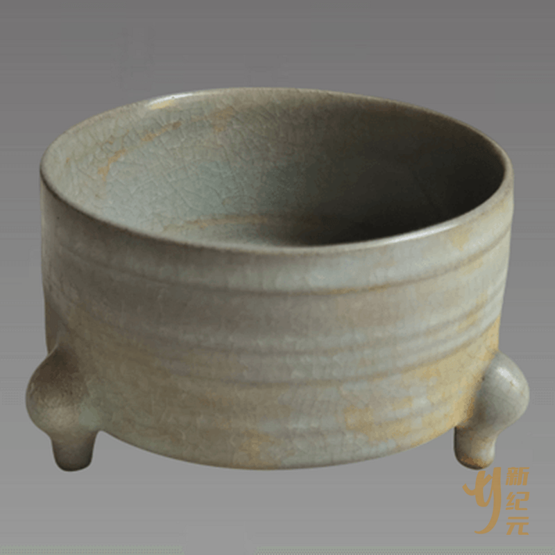 此藏品为 “汝釉三足洗” 造型秀美典雅,圆口,平底,下承以三足。里外施天青色釉,深沉肃穆。外底满釉,有3个细小支烧钉痕。通器完美 ,做工考究,工艺大方,保存完好,十分难得。汝瓷小巧朴雅,温婉隽永,集中国美学之粹,显中国哲学之华,历史意义更是深远。汝窑开窑时间前后只有二十年,由于烧造时间短暂,传世亦不多,在南宋时,汝窑瓷器已经非常稀有。南宋时已有“近尤难得”记载,明代前期景德镇德御厂曾一度仿烧,清代雍正、乾隆时更有年希尧、唐英等督窑大量仿烧,但鲜有乱真者。宋、元、明、清以来,宫廷汝瓷用器,内库所藏,视若珍宝、与商彝周鼎比贵。被称之为“纵有家财万贯,不如汝瓷一片,具有较高的文化欣赏价值和收藏价值。