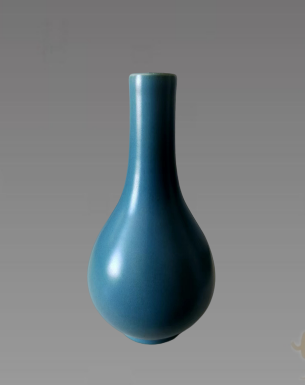 霁蓝釉长颈瓶清新淡雅,耐人寻味,是代表霁蓝釉赏瓶水平的精绝作品。霁蓝釉瓷器虽然没有华丽的纹饰和造型,却在简约中让人们领略到其雅正之姿、秀丽之美!!!