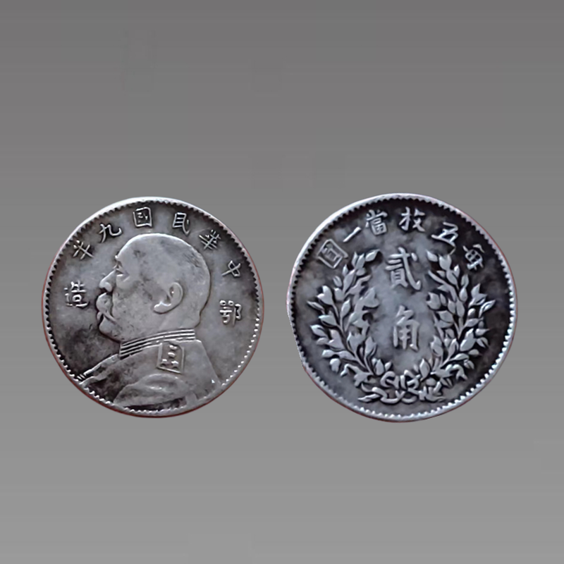 民国二年到九年,北洋军阀正式铸造袁世凯头像银币,因币上铸有袁世凯侧身头像,故民间俗称“袁大头”。“袁大头”银币共有四种面值:壹圆、中圆(五角)、贰角、壹角,其中最常见的为壹圆袁大头,贰角袁大头则不多见,传世甚罕。
